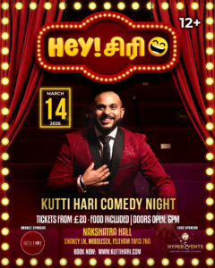 Join Kutti Hari, Europe’s pioneering Tamil stand-up comedian, for an evening of laughter and vibrant energy at our Open Mic night.